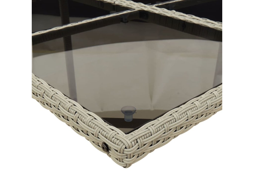 - Materiál: PE ratan, oceľ s práškovou povrchovou úpravou, tvrdené sklo