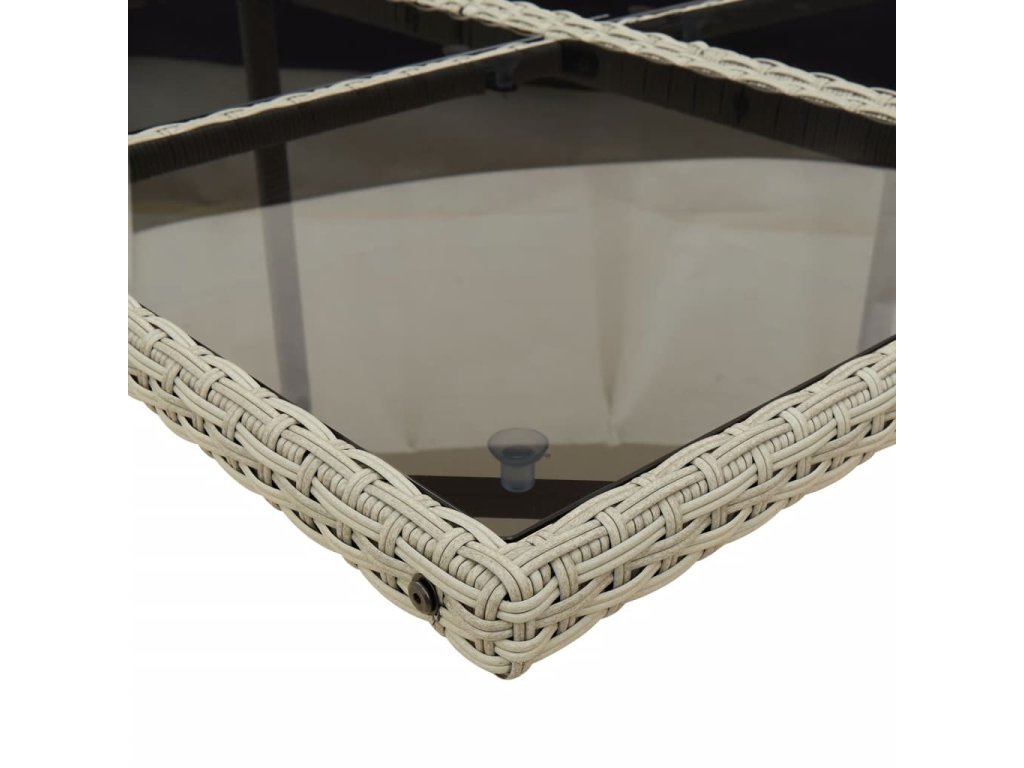 - Materiál: PE ratan, oceľ s práškovou povrchovou úpravou, tvrdené sklo