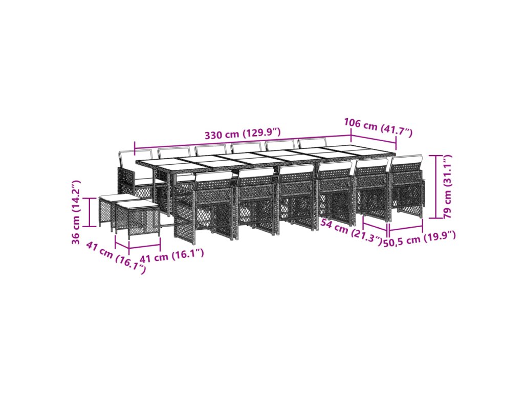 17-dielna záhr. jedálenská súprava s vankúšmi čierna polyratan 3210822