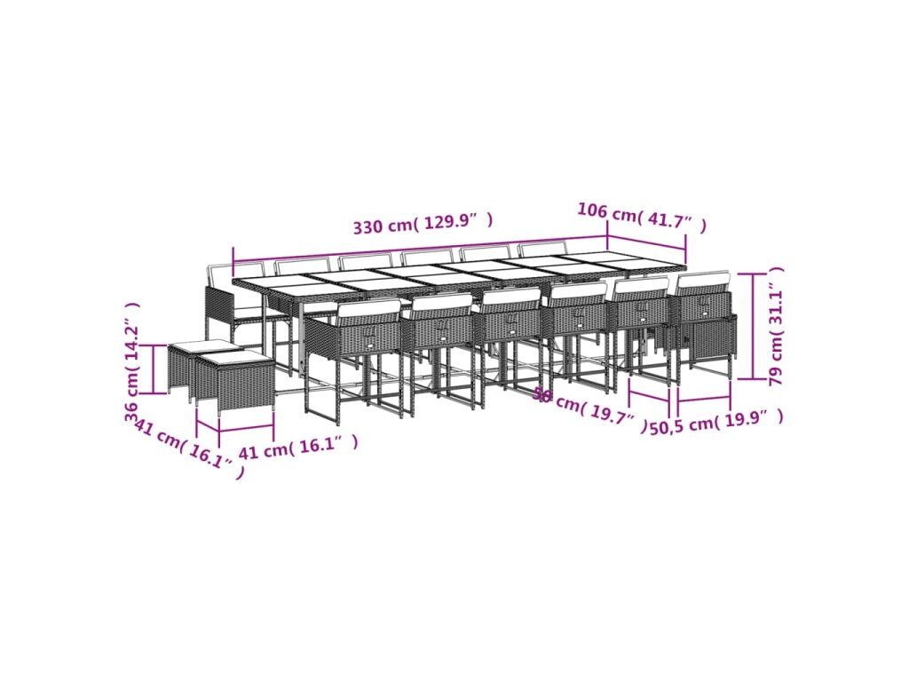 17-dielna záhr. jedálenská súprava s vankúšmi čierna polyratan 3211362