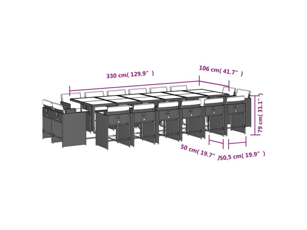 17-dielna záhr. jedálenská súprava s vankúšmi čierna polyratan 3278010