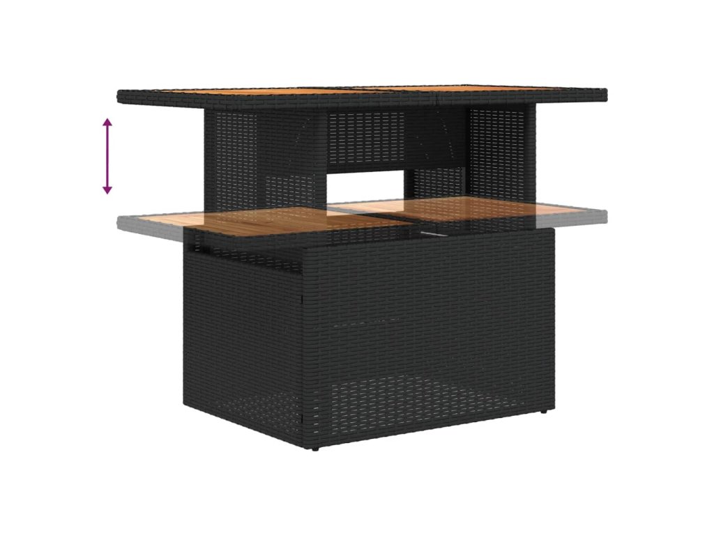 - Materiál: PE ratan, práškovaná oceľ, masívne akáciové drevo s olejovým náterom