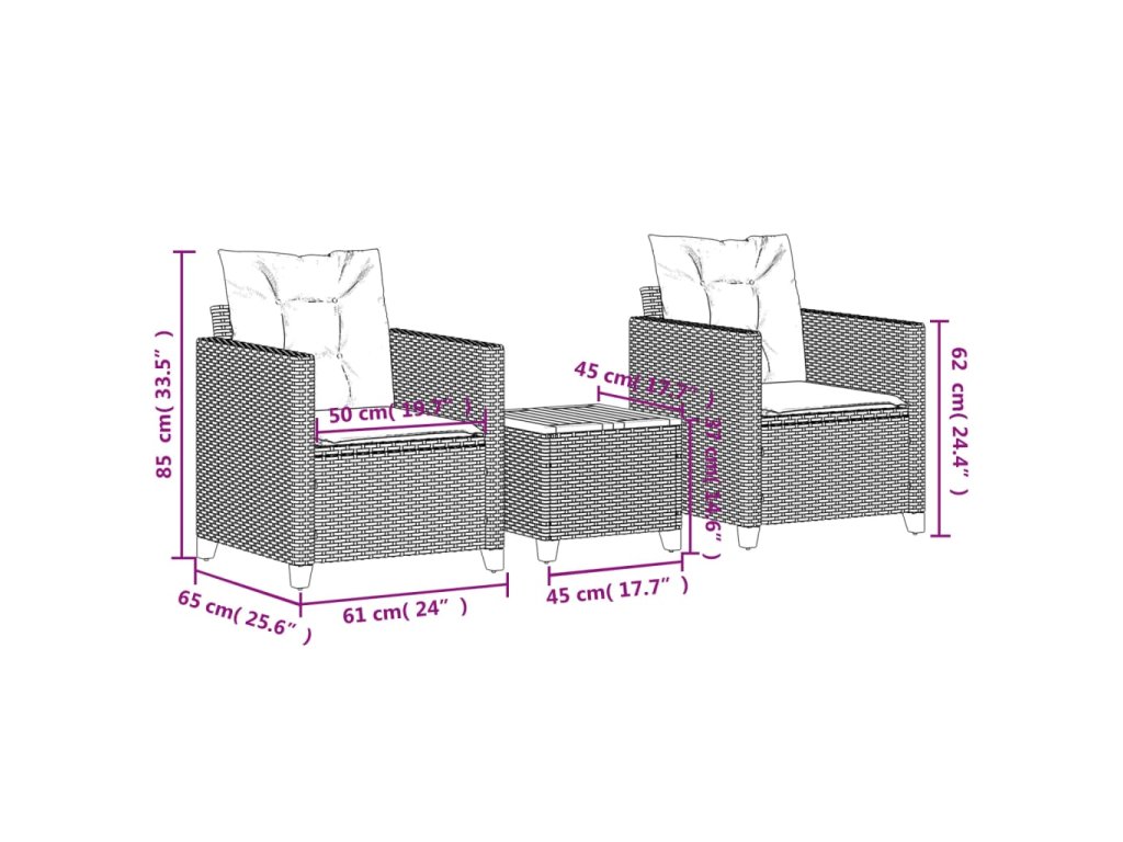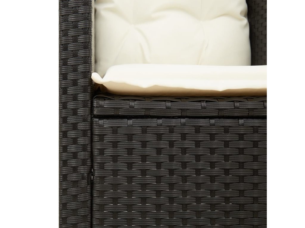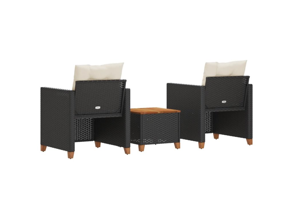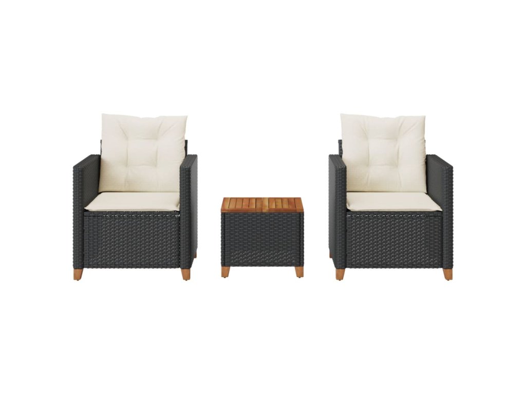 3-dielna bistro súprava s vankúšmi čierna polyrataná akácia 366309