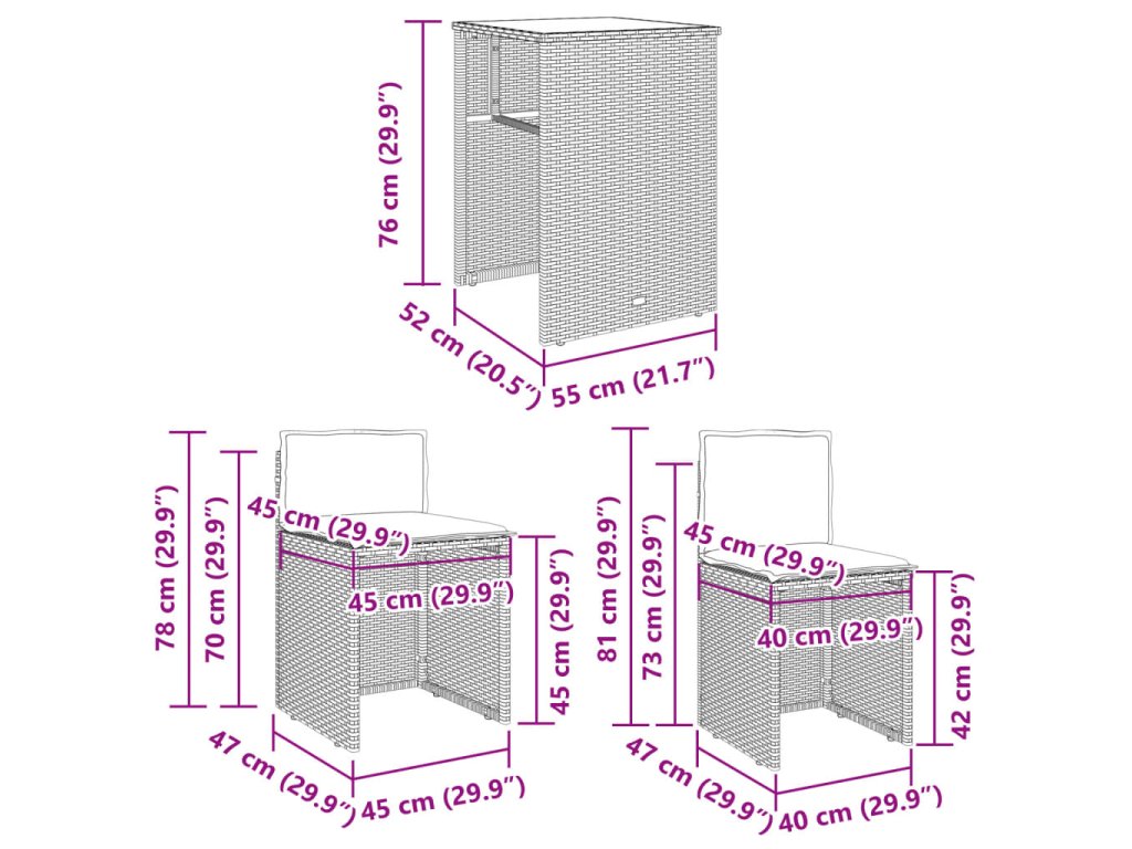 - Kompaktné skladovanie: Tieto záhradné stoličky sa dajú úhľadne zasunúť pod sedadlá, čím sa ušetrí miesto.