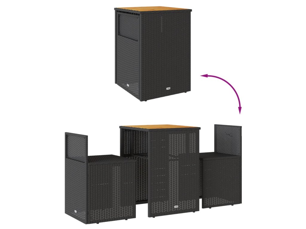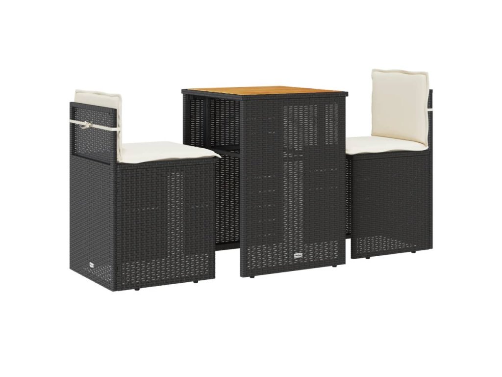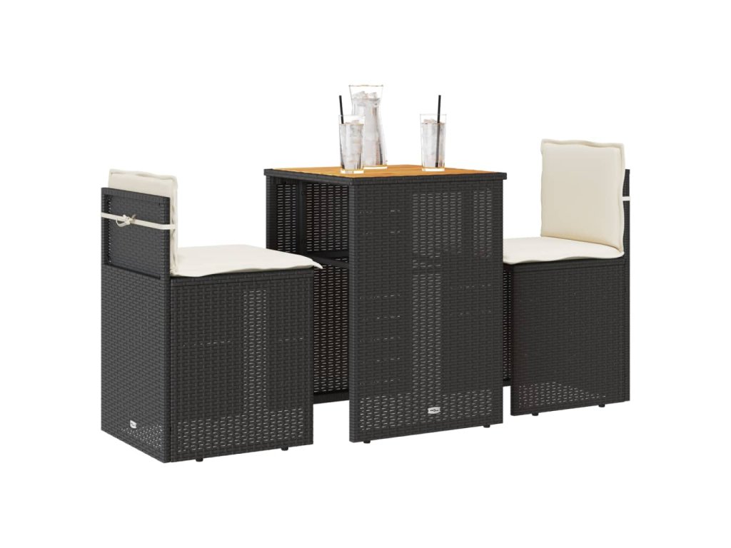 3-dielna bistro súprava s vankúšmi čierna polyratanová 4003875