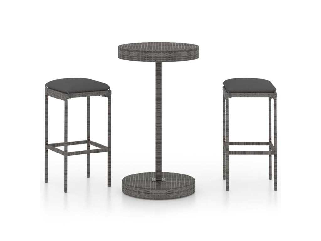 3-dielna záhradná barová súprava s podložkami sivá polyratanová 3064760