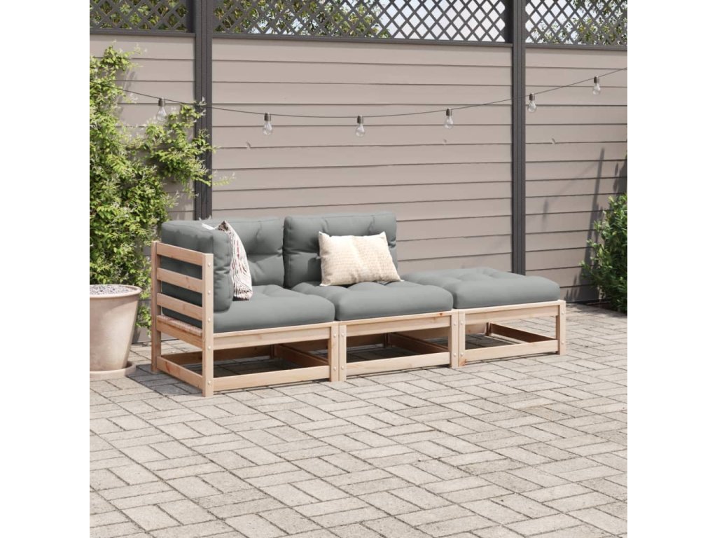 3-dielna záhradná sedacia súprava a vankúše borovicový masív 3295831