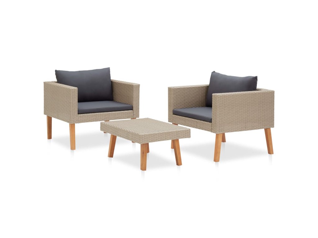 3-dielna záhradná sedacia súprava+podložky, polyratan, béžová 310217