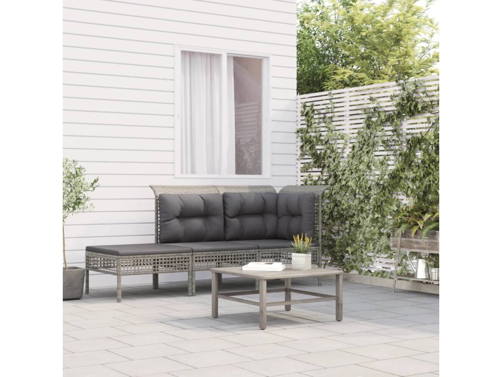 3-dielna záhradná sedacia súprava s podložkami sivá polyratan 319661
