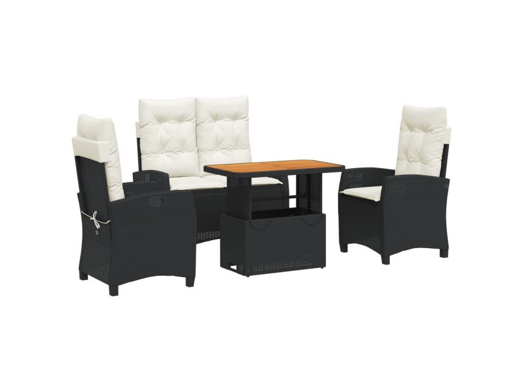 4-dielna záhradná jedálenská sada s vankúšmi čierna polyratan 3277383