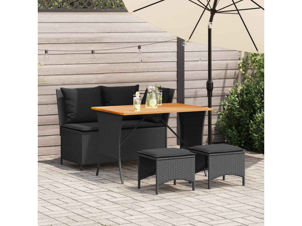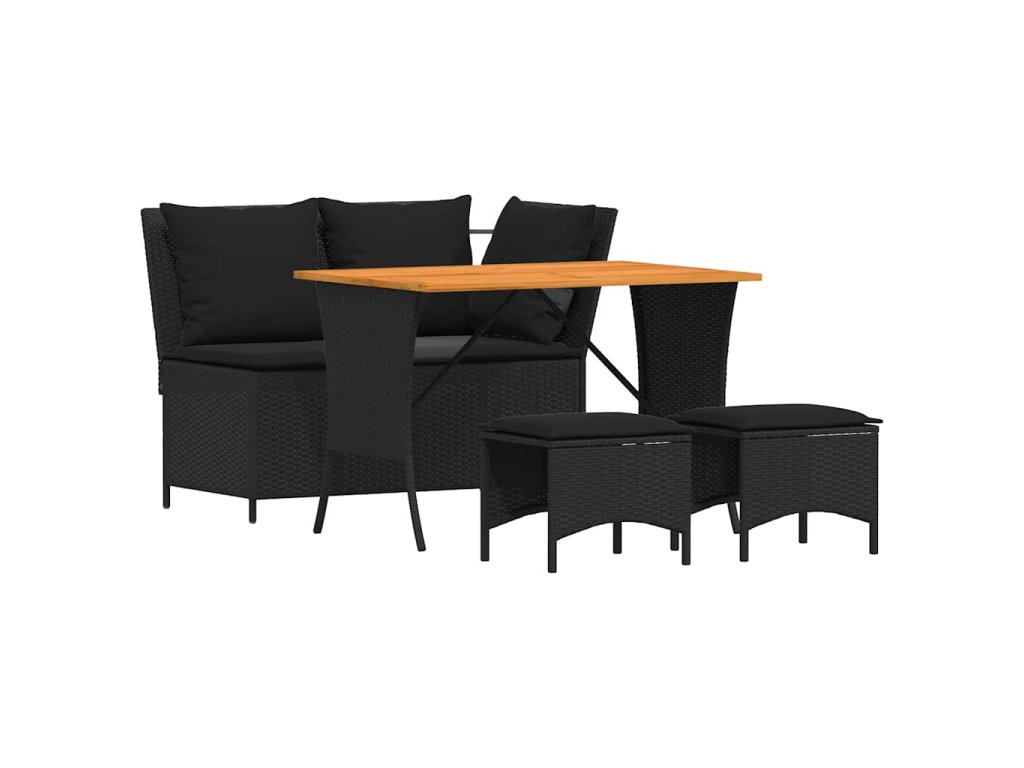 4-dielna záhradná jedálenská sada s vankúšmi čierna polyratan 4104132
