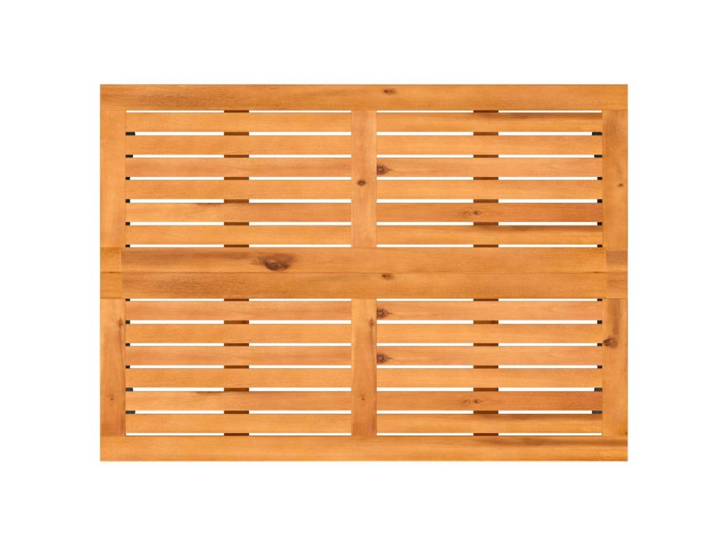 - Stabilná a ľahko čistiteľná stolová doska: Tento záhradný stôl má dosku z akáciového dreva, ktorá je stabilná, odolná a ľahko sa čistí vlhkou handričkou.
