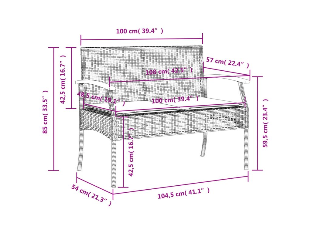 - Rozmery vankúša lavice: 100 x 48 x 3 cm (Š x H x V)