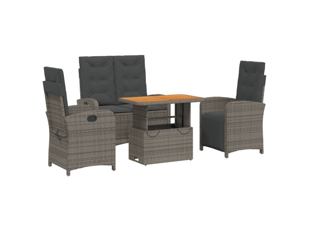 4-dielna záhradná jedálenská súprava s vankúšmi sivá polyratan 3277348