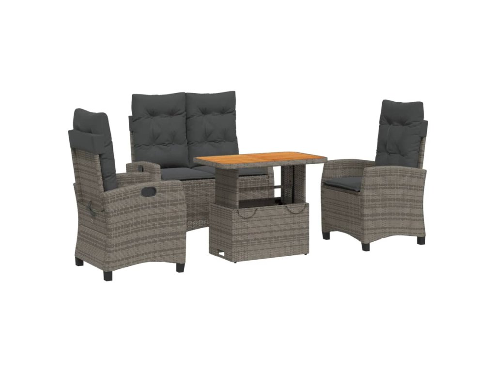 4-dielna záhradná jedálenská súprava s vankúšmi sivá polyratan 3277407