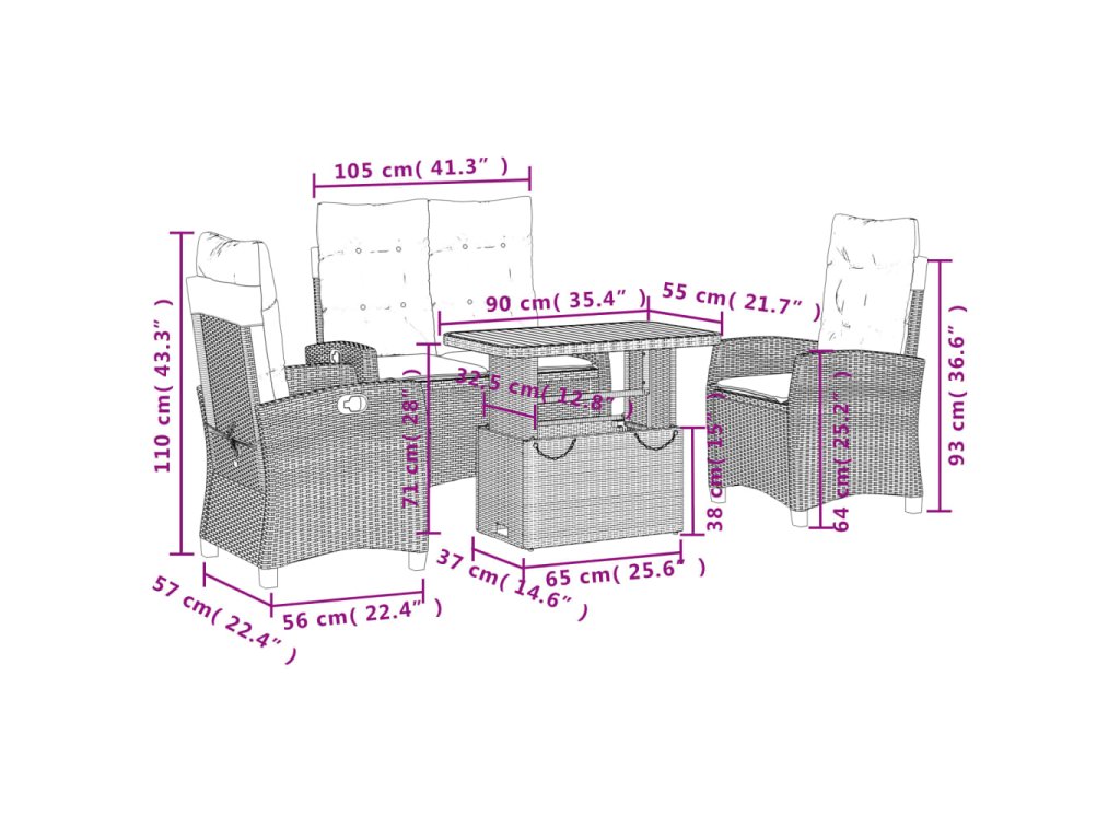 - Materiál: PE ratan, práškovaná oceľ, masívne akáciové drevo s olejovým náterom