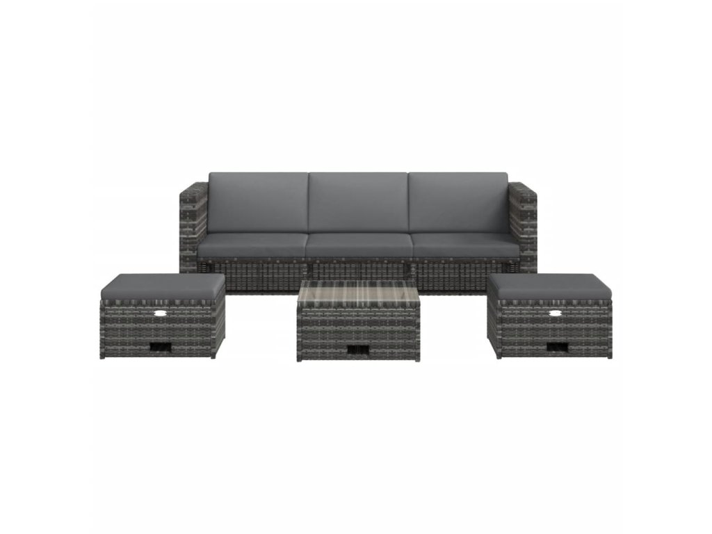 4-dielna záhradná sedacia súprava a vankúše polyratan sivá 48145