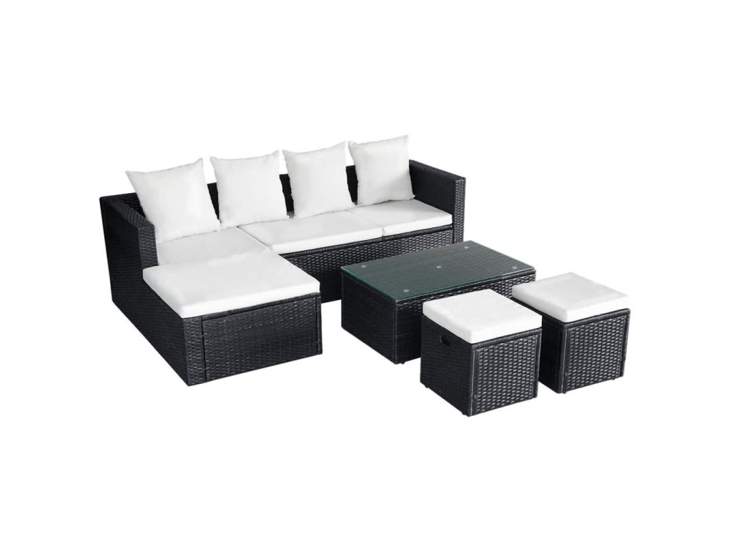 4-dielna záhradná sedacia súprava+podložky, polyratan, čierna 42586