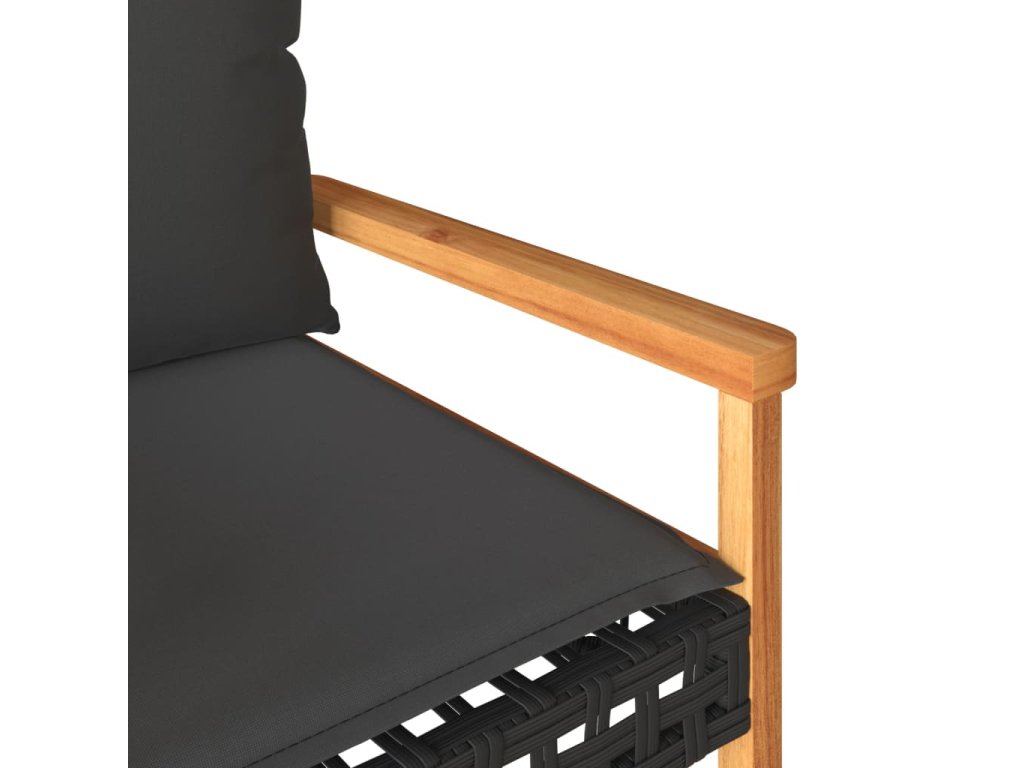 - Materiál: PE (polyetylén) ratan, oceľ s práškovou povrchovou úpravou, akáciový masív s prírodným olejovým náterom