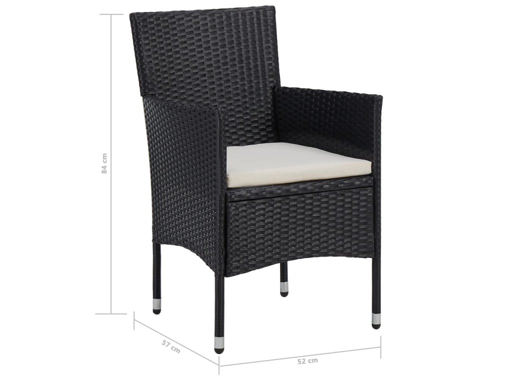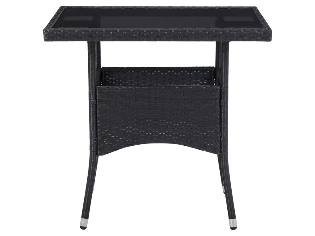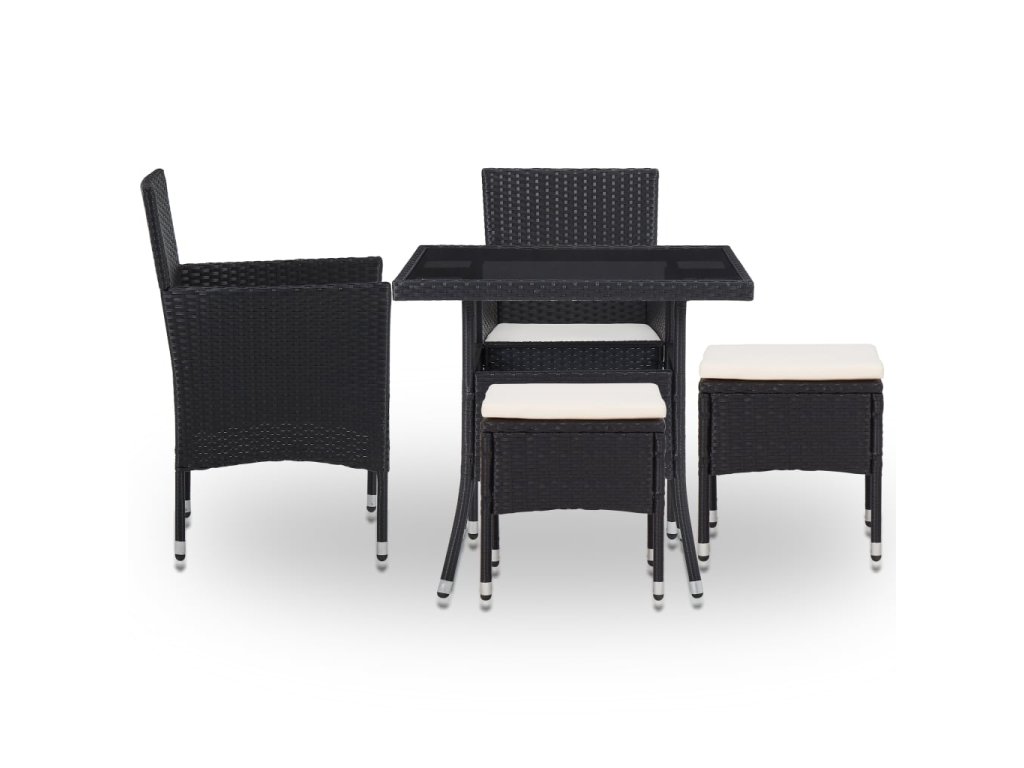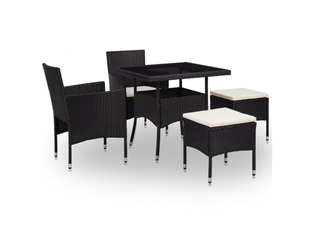 5-dielna vonkajšia jedálenská súprava čierna polyratan a sklo 46175