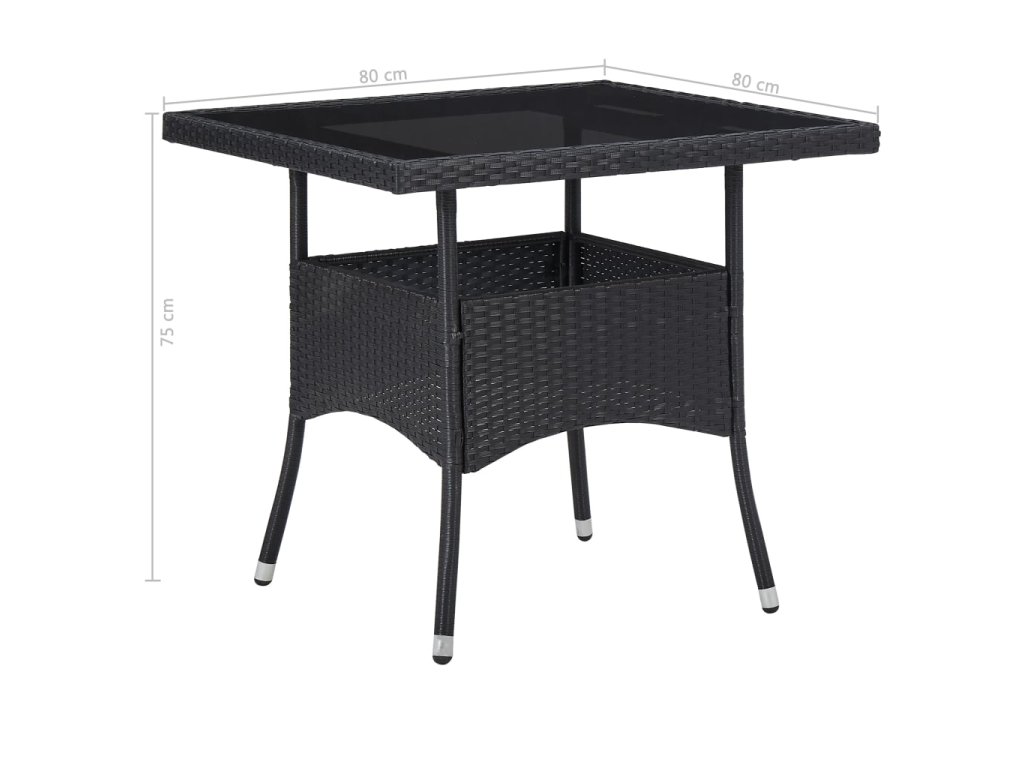 - Materiál: PE ratan + doska stola z tvrdeného skla + oceľový rám s práškovanou povrchovou úpravou