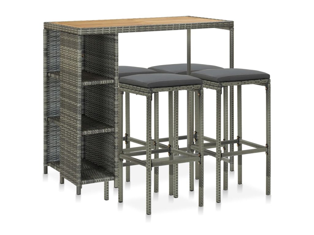 5-dielna záhradná barová súprava s vankúšmi polyratanová sivá 3064917