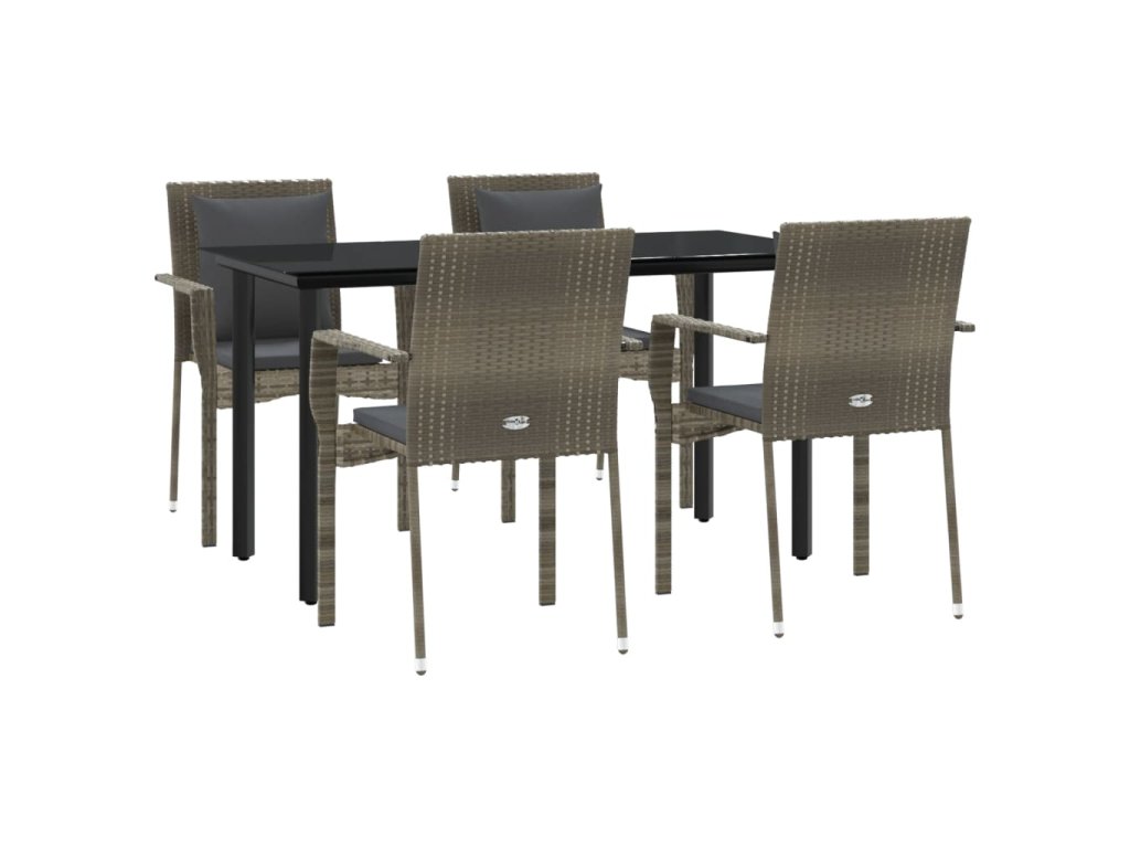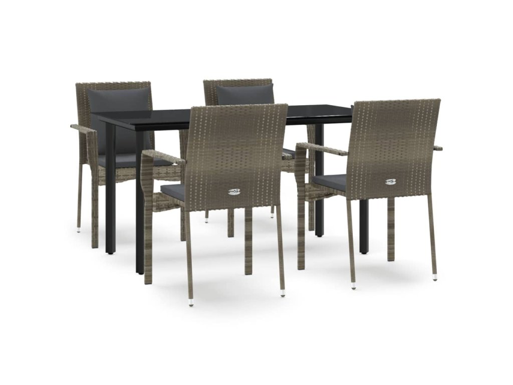 5-dielna záhradná jedál. sada s vankúšmi čierno-sivá polyratan 3185115