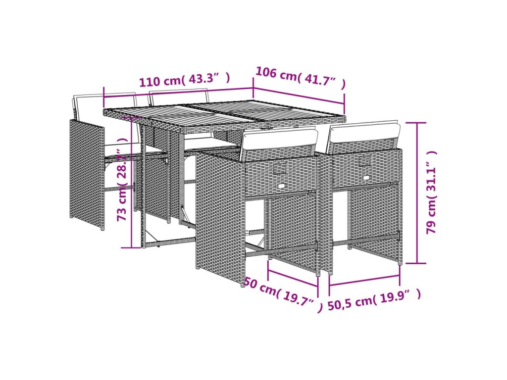- Materiál: PE ratan, oceľ s práškovou povrchovou úpravou, akáciový masív