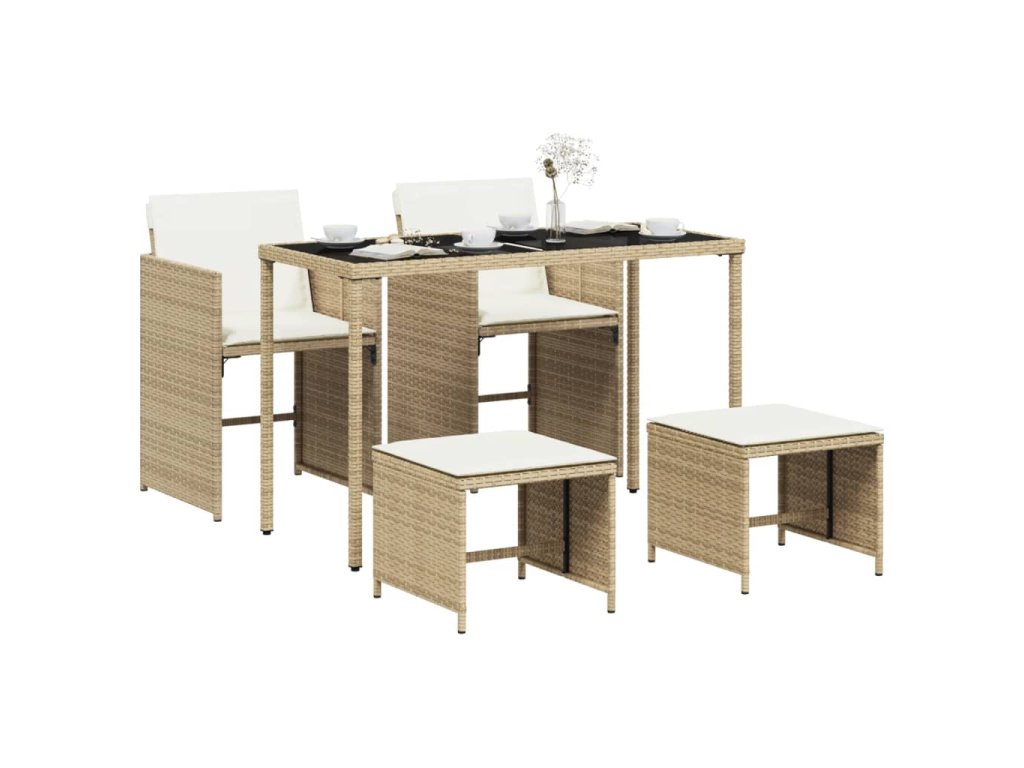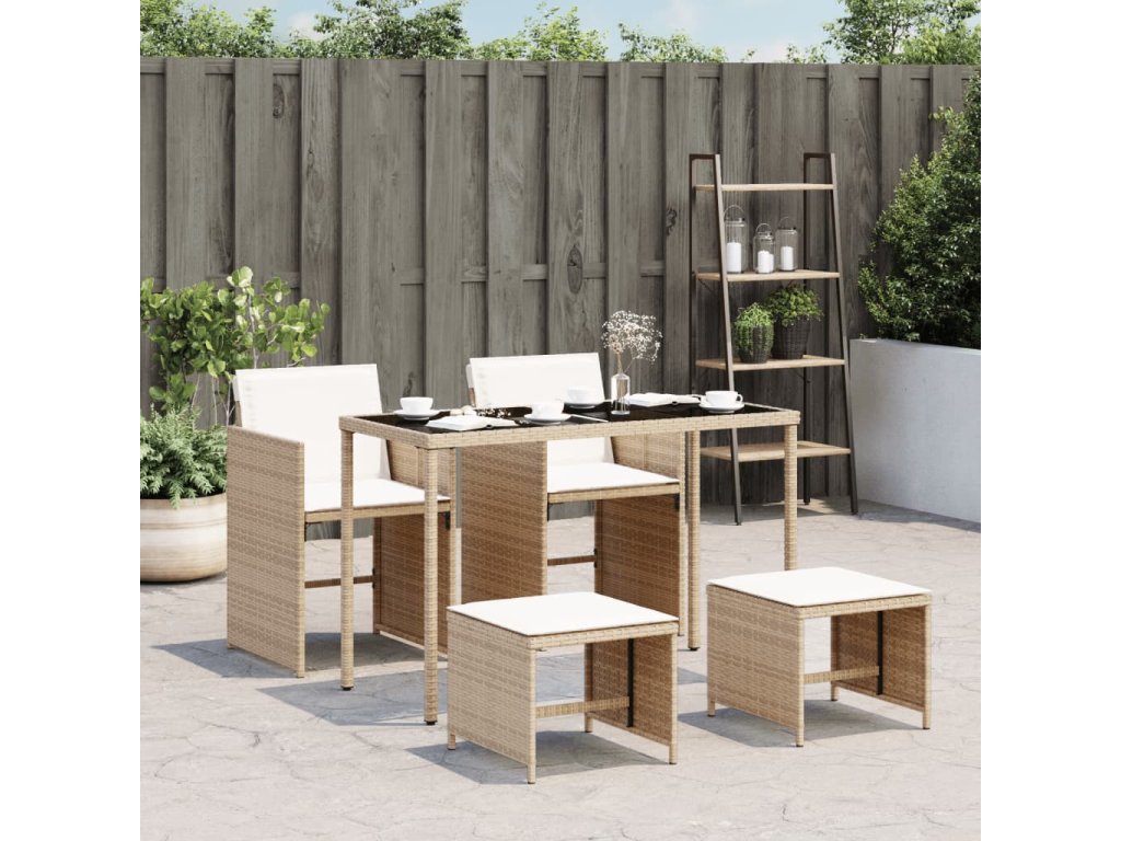 5-dielna záhradná jedálenská súprava a vankúše béžová polyratan 365083