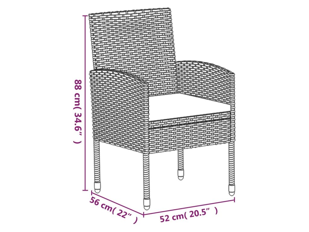 - Materiál stoličky: PE ratan + oceľ s práškovou povrchovou úpravou