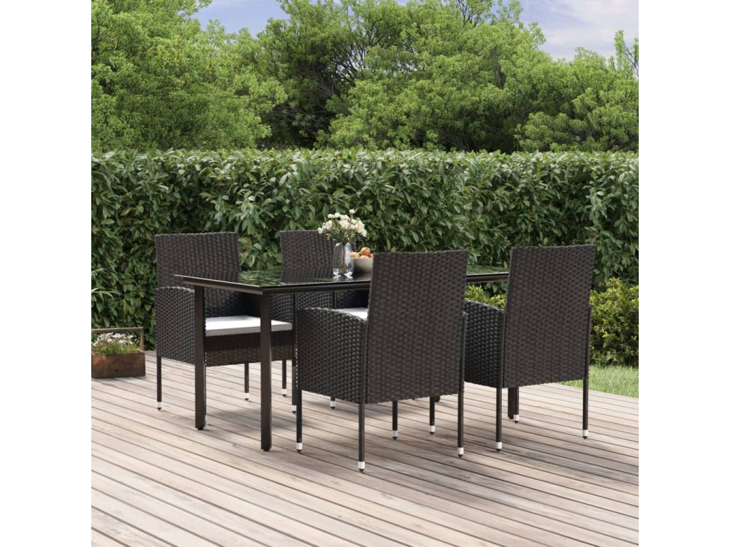 5-dielna záhradná jedálenská súprava a vankúše čierna polyratan 3156766