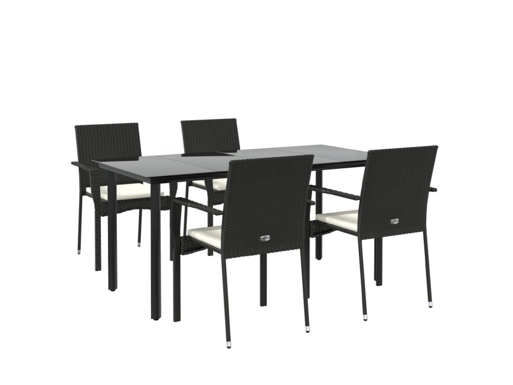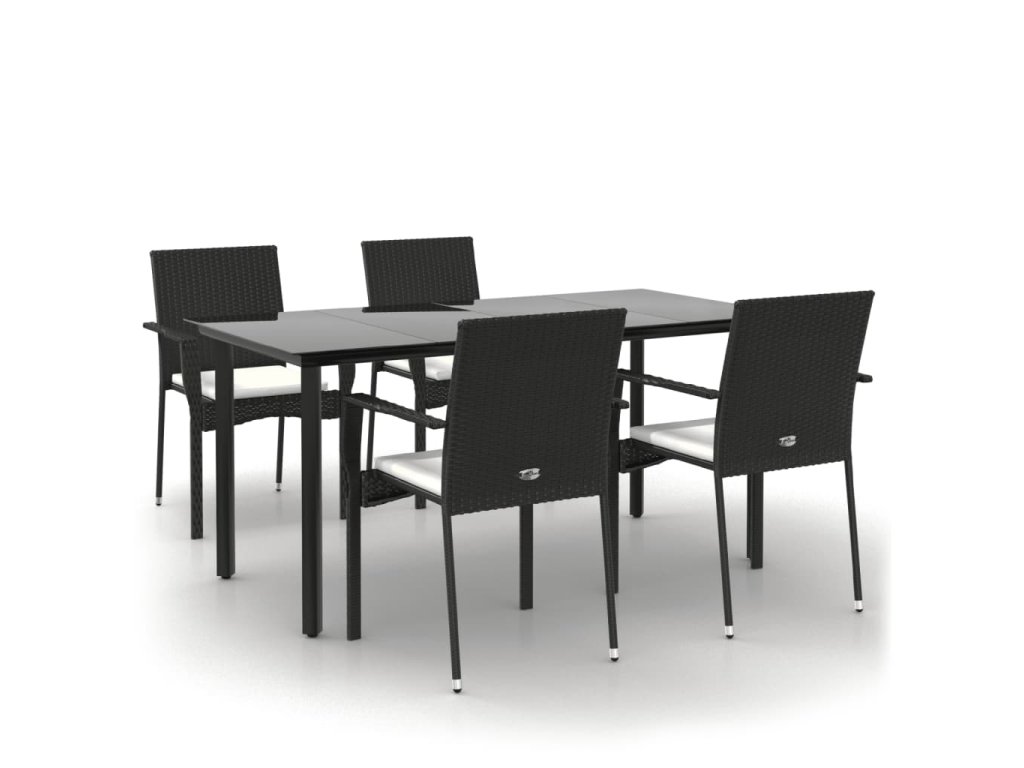 5-dielna záhradná jedálenská súprava a vankúše čierna polyratan 3185134