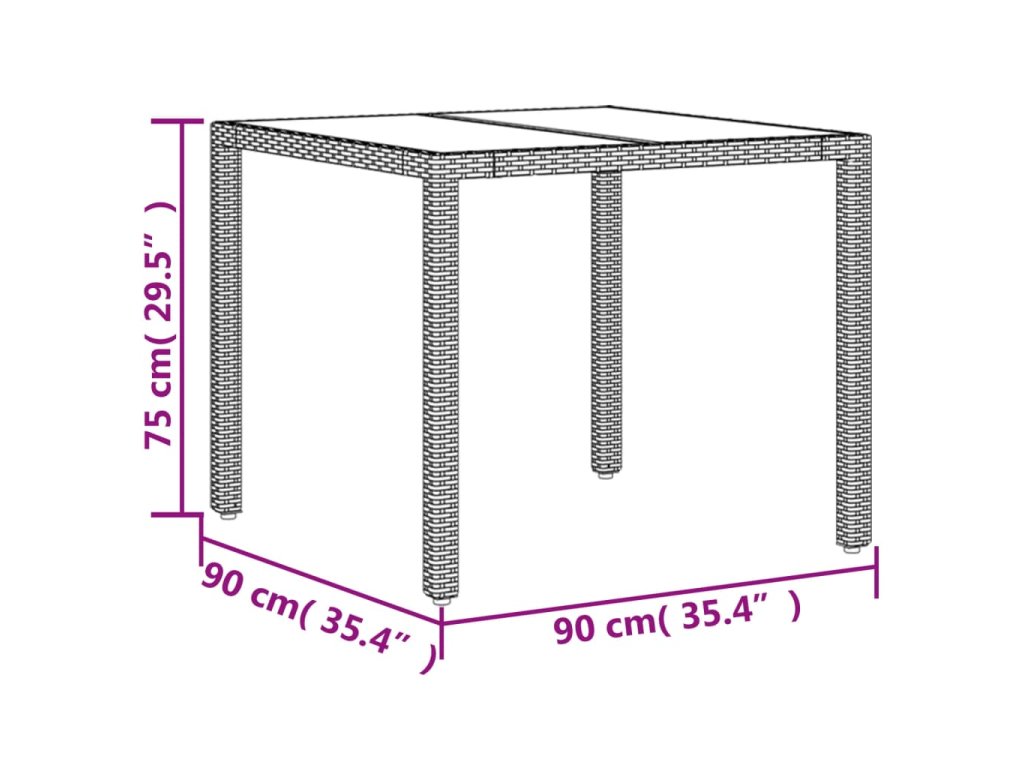 - Sklenená doska stola: Doska vonkajšieho stola je vyrobená z pevného a odolného tvrdeného skla, čo uľahčuje čistenie vlhkou handričkou a dodáva vášmu vonkajšiemu priestoru nádych elegancie.