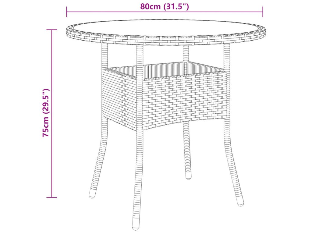 - Materiál: Polyratan, oceľ potiahnutá práškom, tvrdené sklo