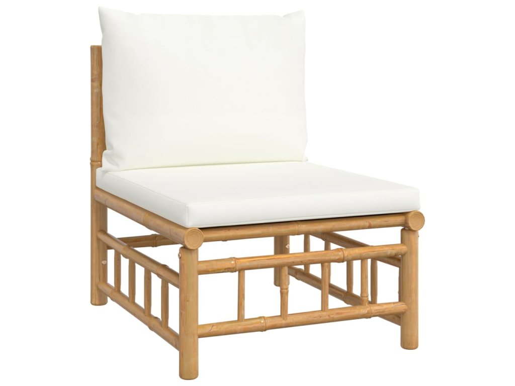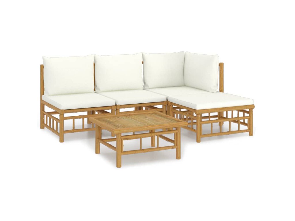 5-dielna záhradná sedacia súprava krémovo-biele vankúše bambus 3155177