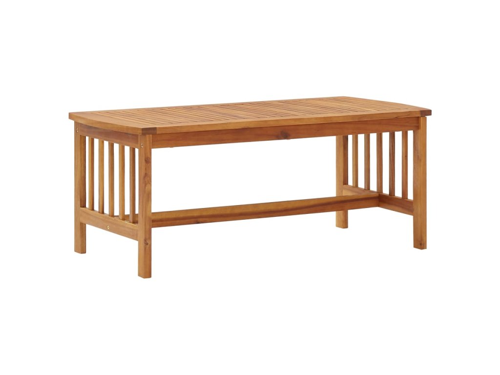 Súprava vonkajšieho nábytku má konštrukciu z akáciového masívu s olejovým náterom, vďaka čomu je stabilná a trvácna. Hrubé podložky na sedadlá a operadlá sa postarajú o to, aby sa vám sedelo naozaj príjemne. Konferenčný stolík má dosku z dreveného masívu s latkovým dizajnom, na ktorú si môžete položiť pochutiny, košíky s ovocím či rôzne ozdobné predmety. Mierne zaoblené operadlo a opierky na ruky zvyšujú pohodlie pri sedení na lavičke a stoličke.
