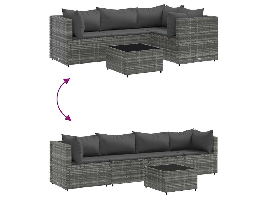 5-dielna záhradná sedacia súprava s podložkami sivá polyratan 3308082