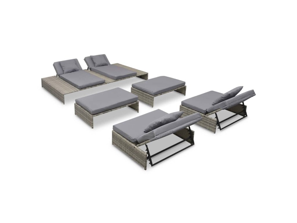 5-dielna záhradná sedacia súprava s vankúšmi polyratanová sivá 42889