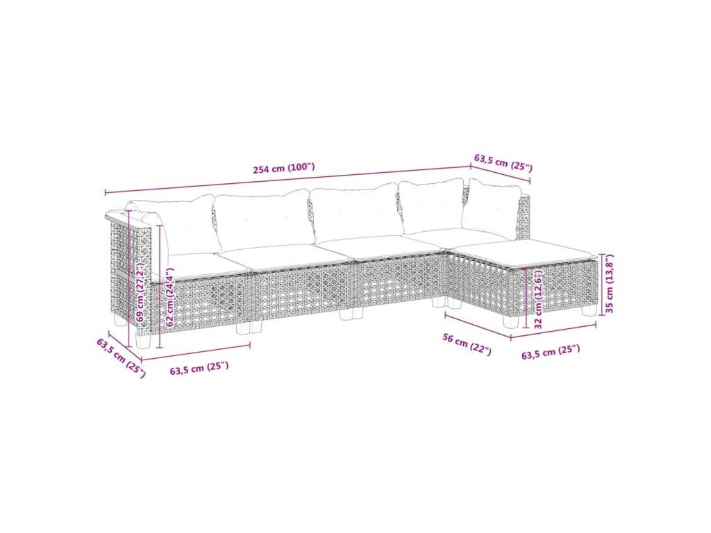 5-dielna záhradná súprava pohoviek s vankúšmi čierna polyratan 3261788
