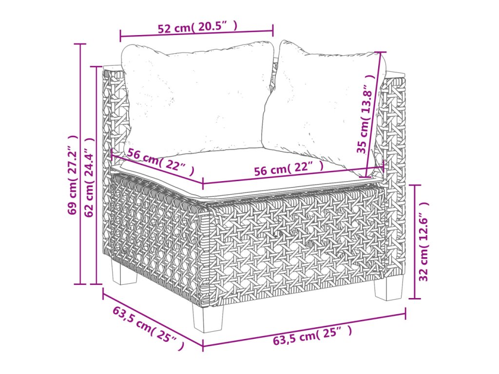 - Rozmery vankúša na operadlo (rohový): 52 x 35 x 10 cm (D x Š x H)