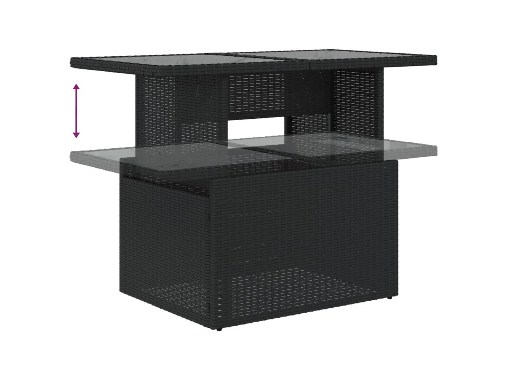 - Materiál: PE ratan, oceľ s práškovou povrchovou úpravou, tvrdené sklo