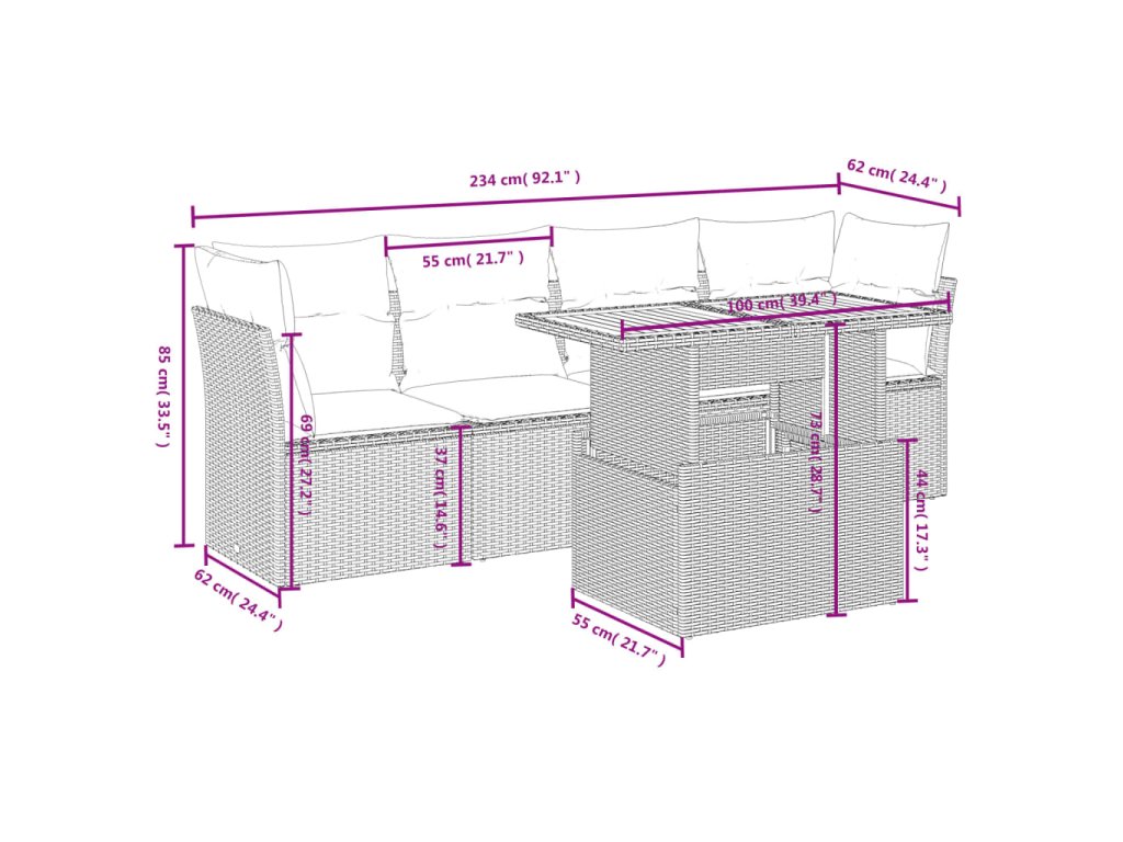 5-dielna záhradná súprava pohoviek s vankúšmi čierna polyratan 3270663