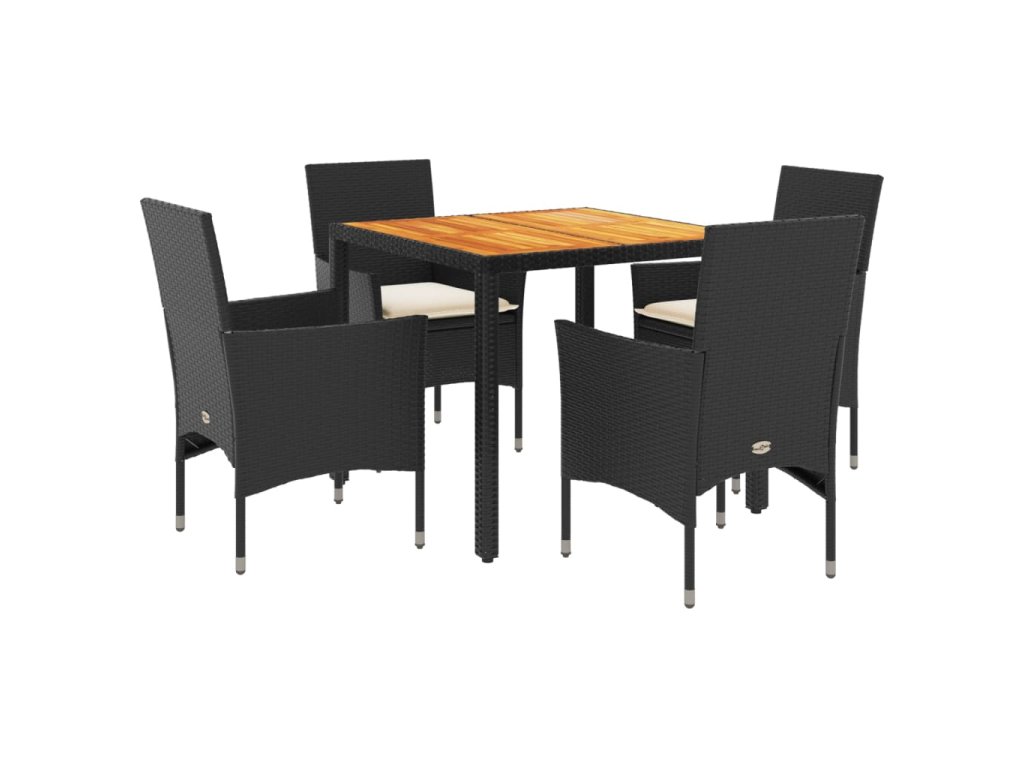 5-dielna záhradná súprava s vankúšmi čierna polyratan a akácia 3278664
