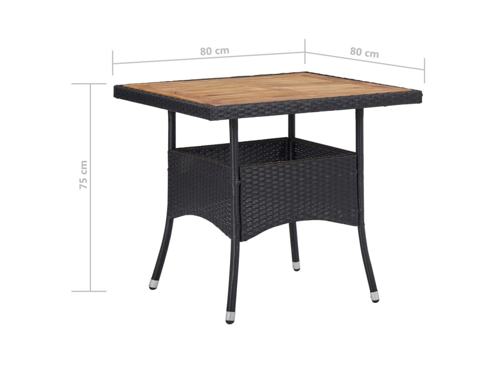 5-dielny záhradný jedálenský set čierny polyratan akáciové drevo 3058529