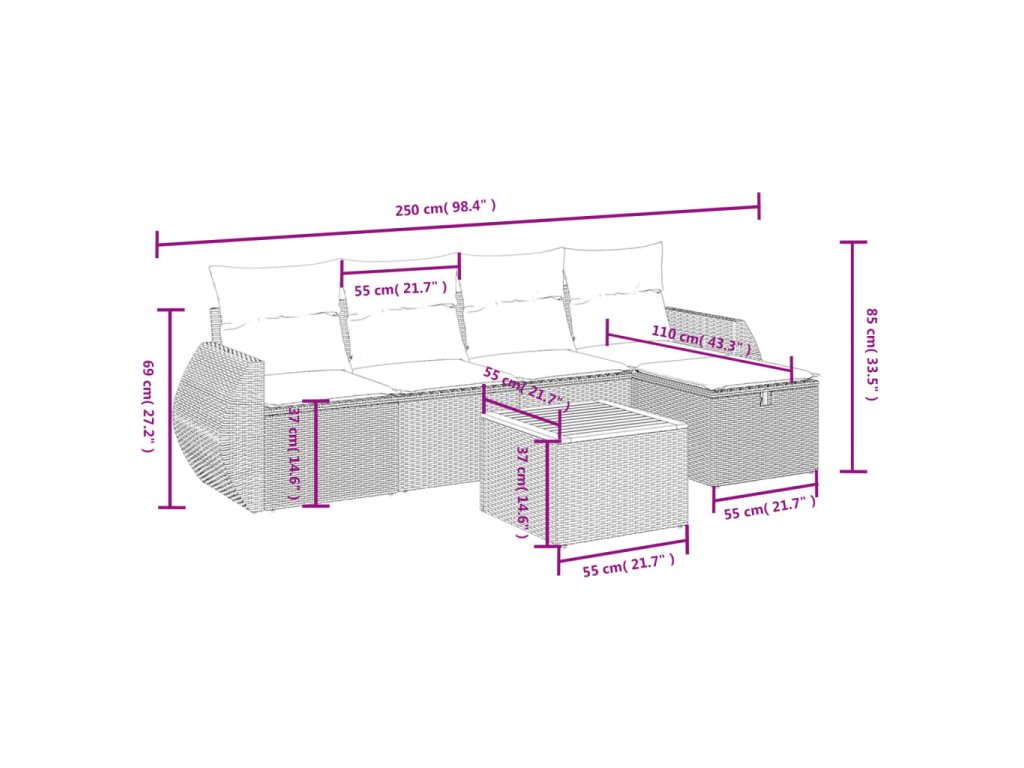 6-dielna záhr.sedacia súprava s vankúšmi mix béžovej polyratan 3265056