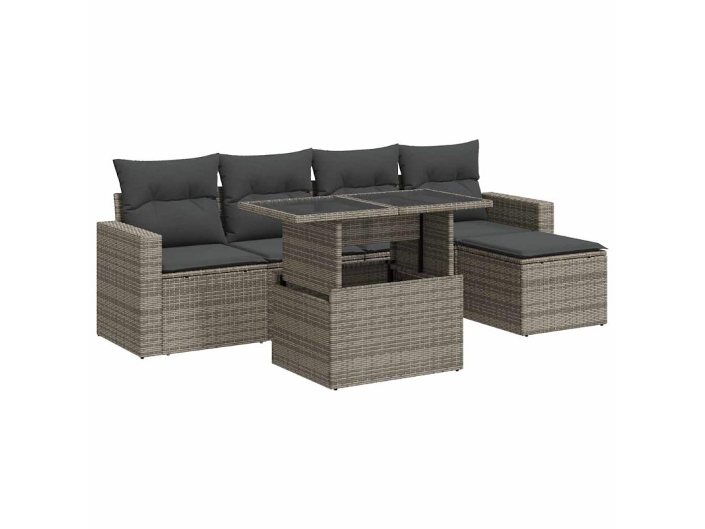 6-dielna záhradná sedacia súprava s podložkami polyratan sivá 3326301