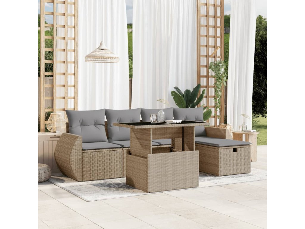 6-dielna záhradná súprava pohoviek s vankúšmi béžová polyratan 3275129