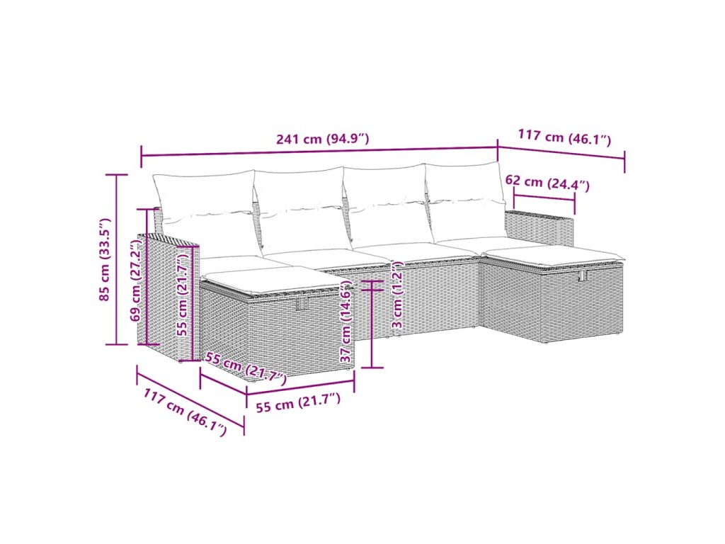 - Modulárny dizajn: Táto súprava vonkajšieho nábytku má modulárny dizajn, vďaka čomu je úplne flexibilná a ľahko sa premiestňuje, takže si môžete vytvoriť prispôsobené usporiadanie vonkajšieho nábytku.