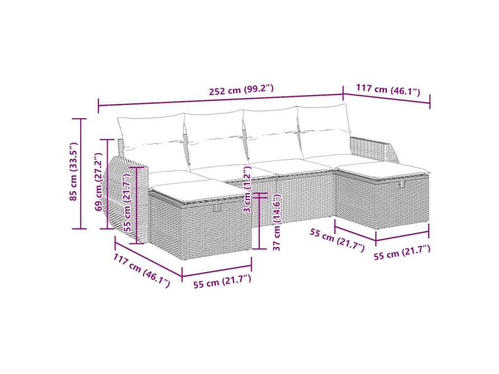 6-dielna záhradná súprava pohoviek s vankúšmi béžová polyratan 3325624