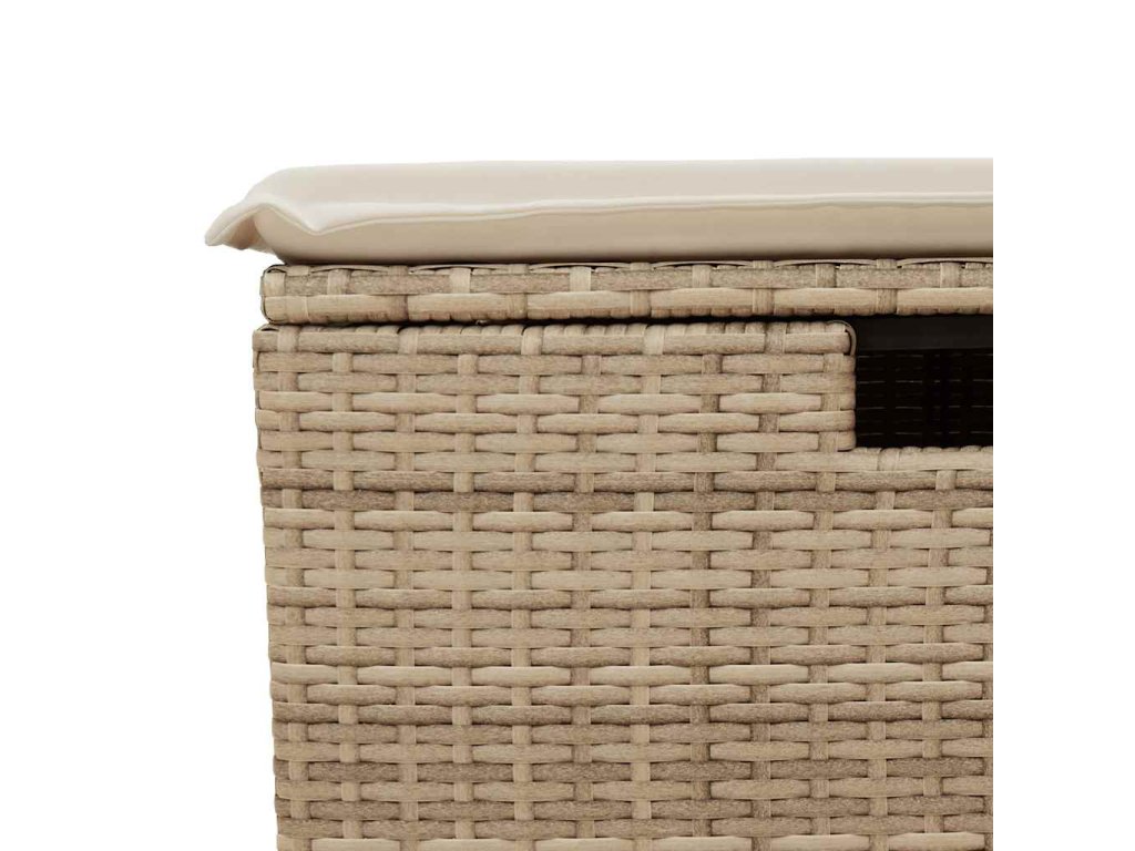 - Úložná funkcia s vodeodolnou taškou: Záhradný nábytok má úložný priestor pod sedadlom, doplnený o vodeodolnú tašku na uloženie vankúšov, hračiek a iných predmetov. Vnútorné vrecko sa dá bezpečne pripevniť k vonkajšiemu nábytku pomocou zapínania na suchý zips pre lepšiu stabilitu.